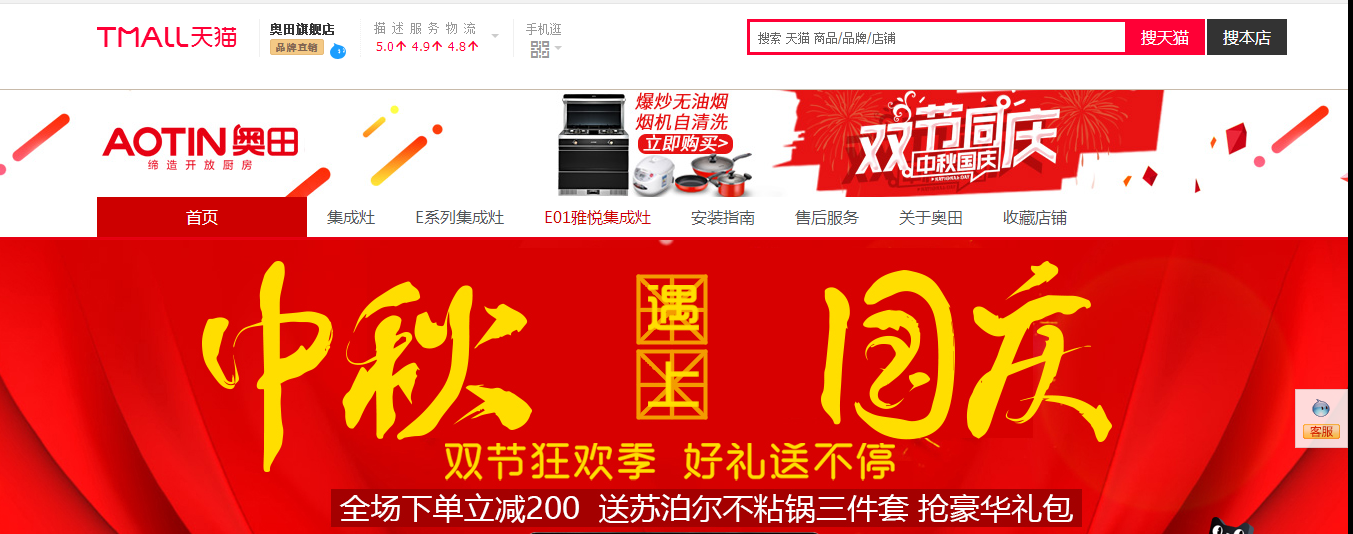 2017年奥田集成灶全面登陆电商平台,聚焦全网营销,开启全方位战略铺点营销模式。奥田集成灶在行业中以高品质著称,广受消费者的喜爱。随着电商时代来临,越来越多的消费者喜欢从网上购买生活必需品,奥田集成灶为了方便广大消费者的购物需求,于今年8月8日在天猫平台盛大新装开业。