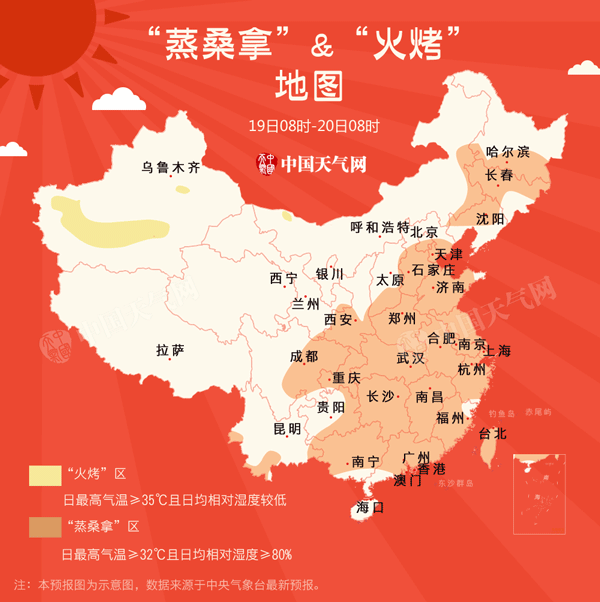 就称为“桑拿天”,中东部出现“桑拿天”区域面积