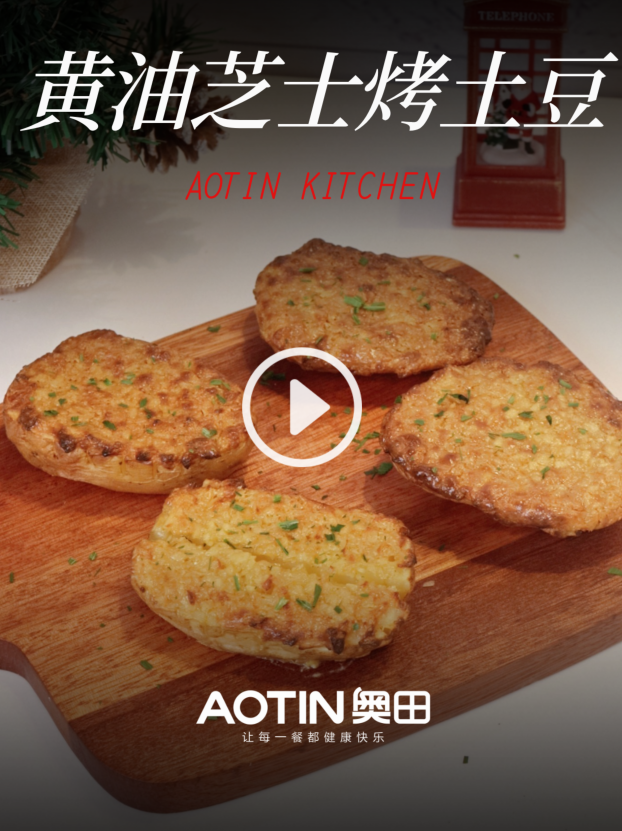 奥田集成灶的蒸烤箱采用3D循环加热技术,热风在腔内立体循环,每一处温度都均匀稳定。土豆在这样的环境中慢慢烘烤,逐渐形成酥脆的外壳,同时内部充分熟化,最终成就外酥内软、芝士完美融化的治愈滋味。